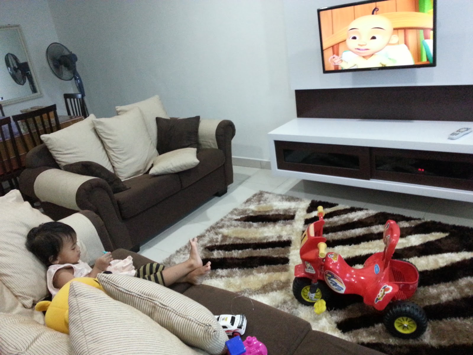 | pandangan dari dekat. saje aku biarkan kosong je atas kabinet tv tu. takde bunga ke frame ke sebab takot zaheen usik n main2. so untuk langkah keselamatan ,takyah letak ape2 kat atas tu:P |